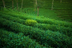 Several weeks before it is harvested, straw mats, thatched roofs or other protective coverings are placed above the tea bushes to mute the springtime sunlight from above. Having become accustomed to abundant sunlight, the plants dramatically increase their levels of chlorophyll (the substance that gives them their green color and collects energy from sunlight) to try to keep their growth rate steady. This natural chemical shift results in a higher level of caffeine, antioxidants, amino acids and other nutrients in the tealeaves.