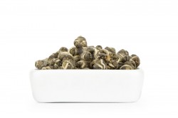 Jasmine Pearls or "Dragon Pearls" are gently rolled green tea leaves scented with fragrant jasmine blossoms.
